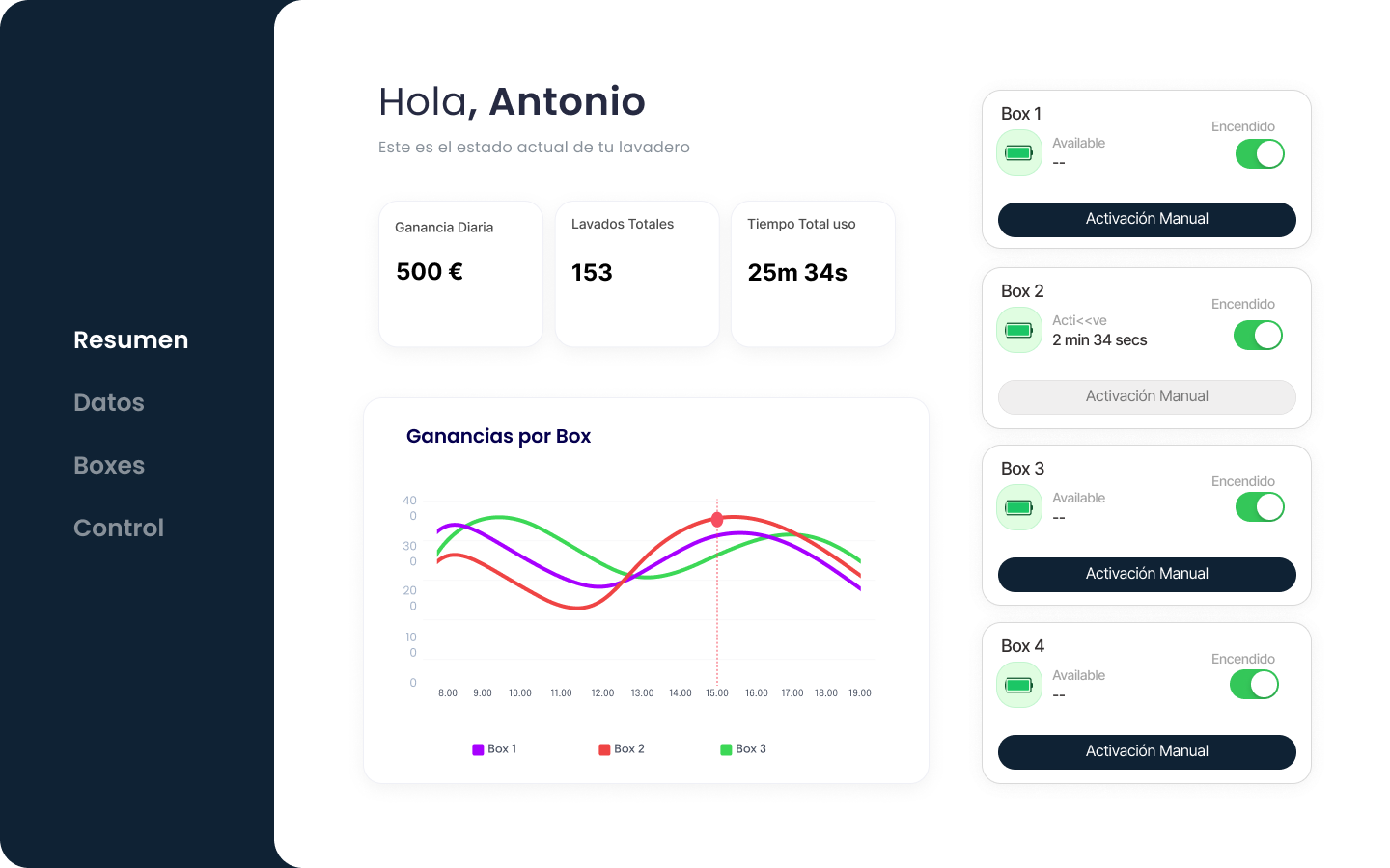 Instalamos un dispositivo en tus boxes y tu centro de lavado queda conectado. Gestión completa, datos en tiempo real y cobros digitales. Sin complicaciones.